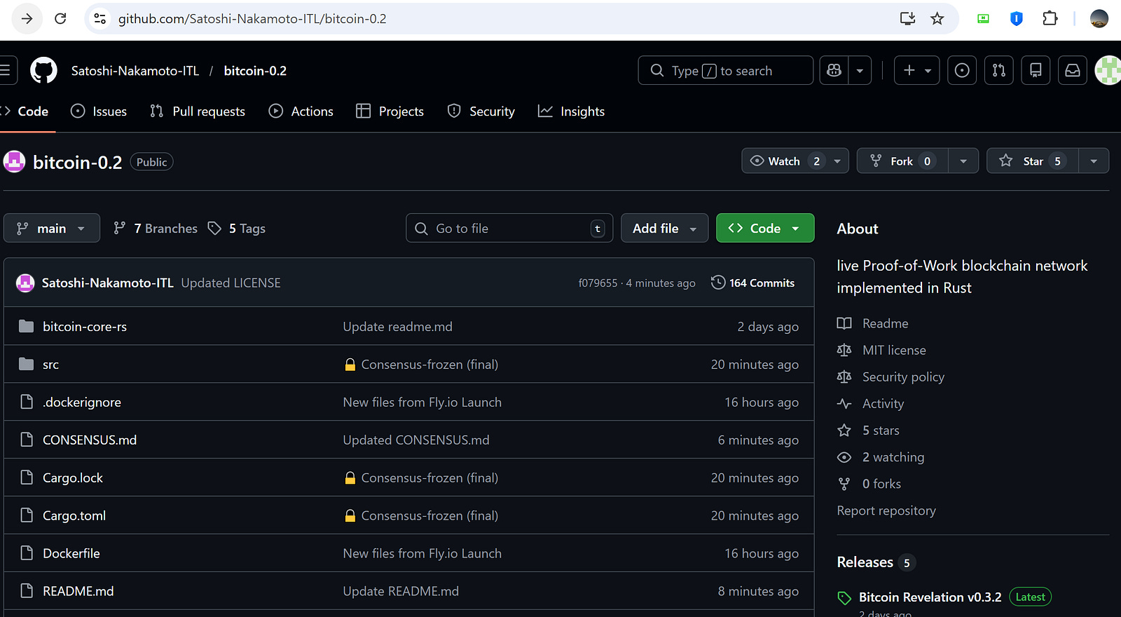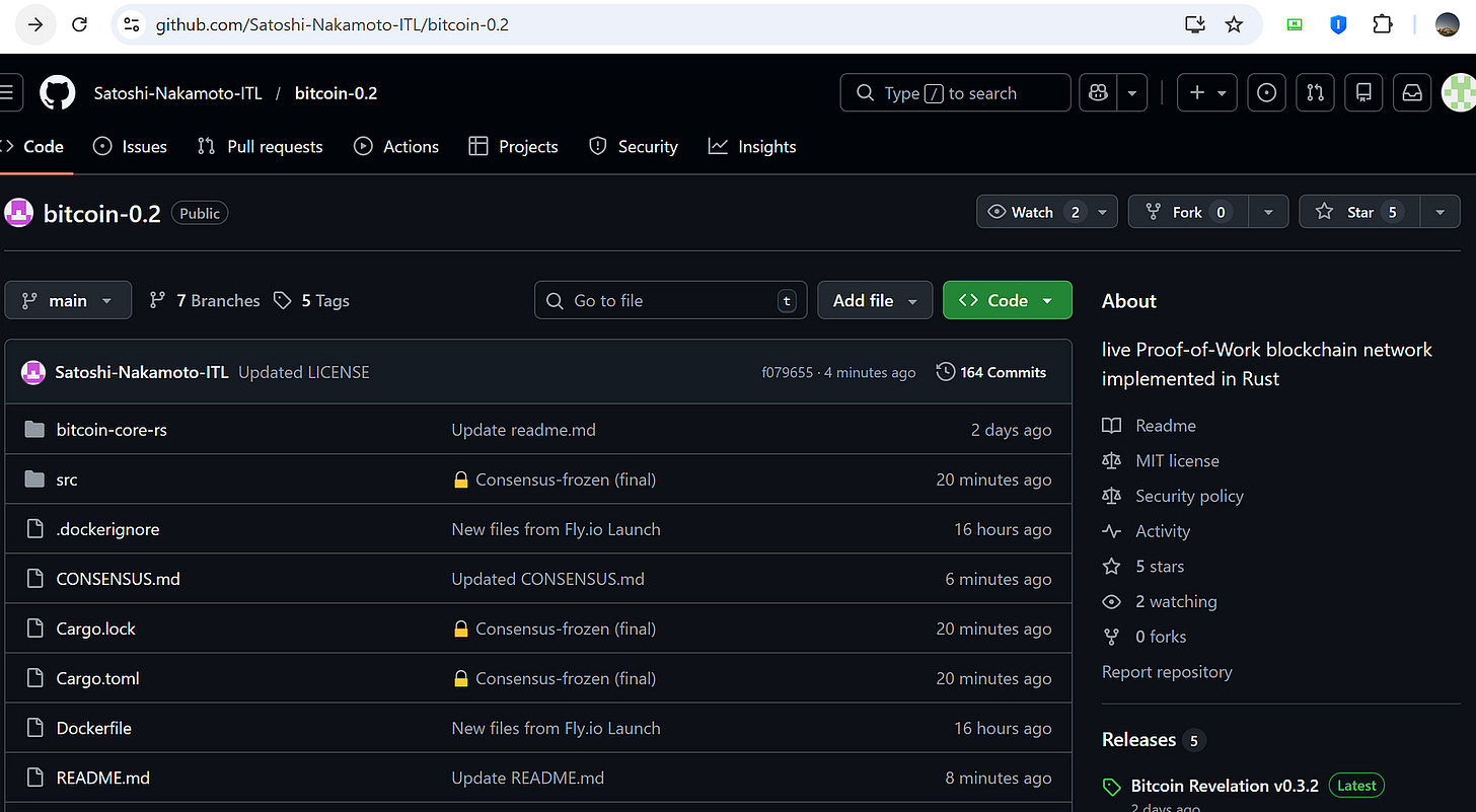 Recently, an experimental peer-to-peer Proof-of-Work system titled “Bitcoin v0.2 — Revelation Edition” was released on GitHub by an individual developer operating under the Satoshi-Nakamoto-ITL identity.