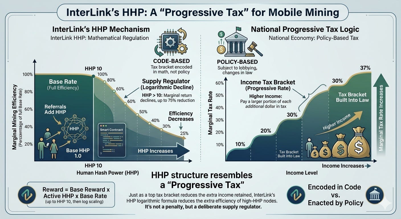 InterLink addresses this not at the policy level, but at the architectural level. The tax is in the formula. The activity requirement is in the protocol.