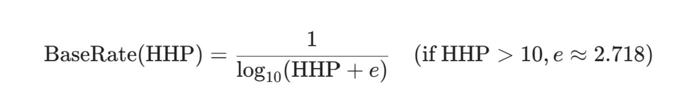 Below that threshold, every point of HHP you generate works at full efficiency. Above it, the logarithmic formula begins compressing your returns — gradually, but persistently.