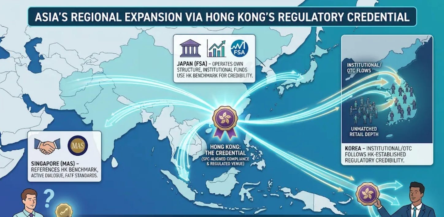 Once an asset carries SFC-aligned compliance and establishes presence on a regulated Hong Kong venue, the regional expansion logic follows the capital flows.