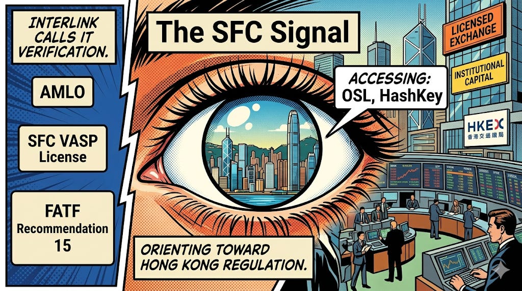 InterLink’s verification system is not an onboarding queue. It is a compliance posture — one oriented toward a specific regulatory jurisdiction, a specific class of exchange, and a specific category of capital.
