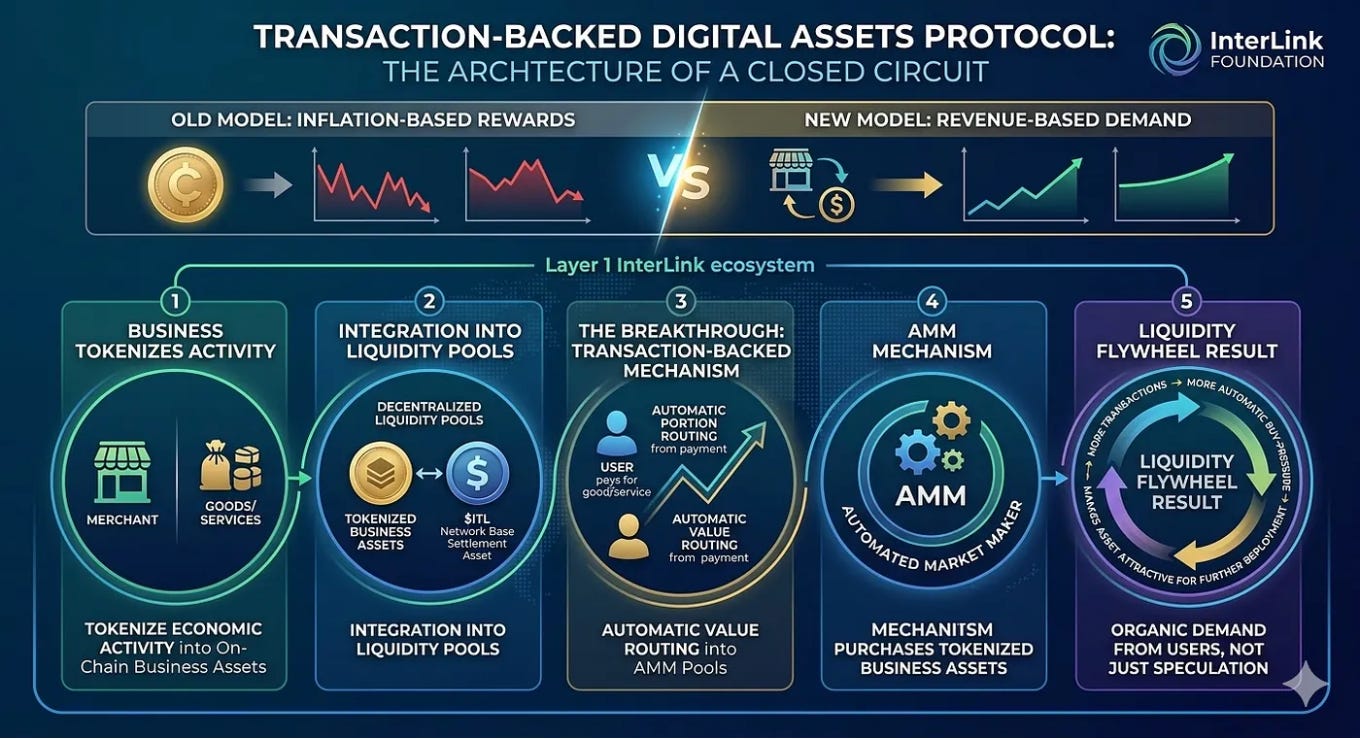 InterLink operates on entirely different logic. Transaction fees generated by large-scale machine activity flow back to verified human participants — not as welfare, but as participation-based returns weighted by trust score.